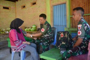 Tim kesehatan TMMD, Lanjut dijelaskan Dansatgas, Selain melaksanakan tugas pokoknya, sebagai tim kesehatan, Mereka juga memberi pelayanan kesehatan kepada masyarakat baik dilakukan di posko kesehatan TMMD maupun mendatangi langsung ke rumah pasien yang menderita sakit.
