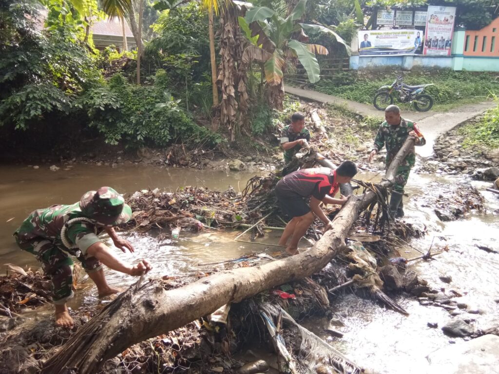 Anggota kita kerahkan untuk bersih-bersih lingkungan terutama di jembatan limpas banyak tumpukan sampah dan ranting kayu yang menghambat aliran sungai.