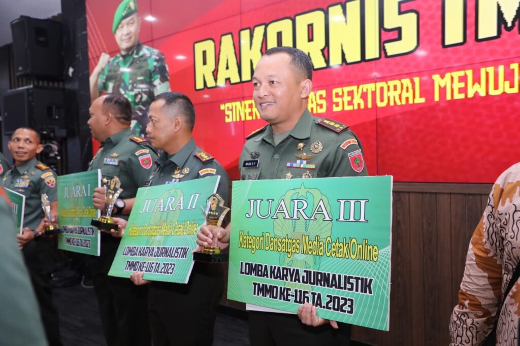 Untuk pemenang kategori media cetak/online Dansatgas juara pertama diraih Kodim 1417 Kendari dengan nilai 414, juara kedua Kodim 0316 Batam dengan nilai 378.75 dan juara ketiga diraih Kodim 1402 Polman dengan nilai 377.(Zik).