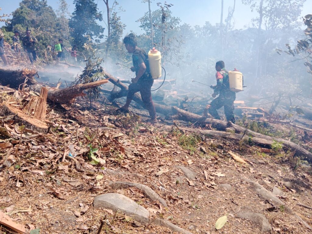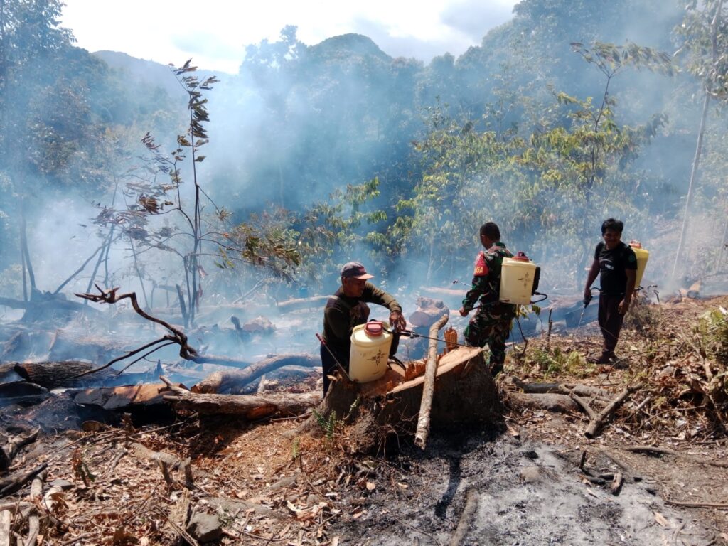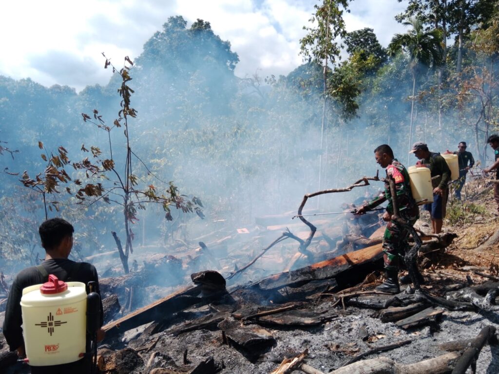 Kebakaran dipicu setelah salah satu warga membersihkan lahan dengan cara membakar dan angin kencang sehingga api merembet ke lahan perkebunan warga, Kata Babinsa Sertu Dinarto, Selasa (8/08/2023).