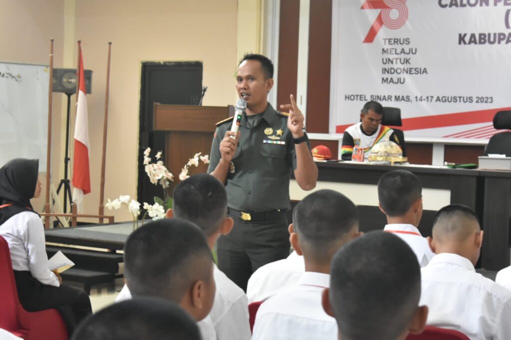 independennews.id (POLMAN) — Komandan Kodim 1402/Polman Letkol Czi Sabar Chandra Gufta Panjaitan,S.Sos, berikan pembekalan materi wawasan kebangsaan dan bela negara kepada 75 orang pasukan paskibraka kabupaten Polman.