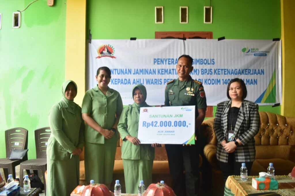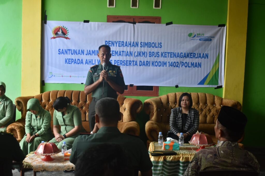 Dandim 1402/Polman Serahkan Santunan BPJS Ketenagakerjaan Kepada Ahli Waris