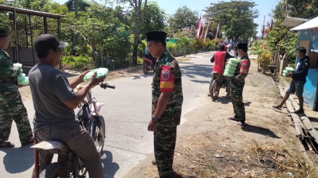Jum’at Berkah, Anggota TNI di Polman Bagi Makanan Siap Saji Kepada Pengendara