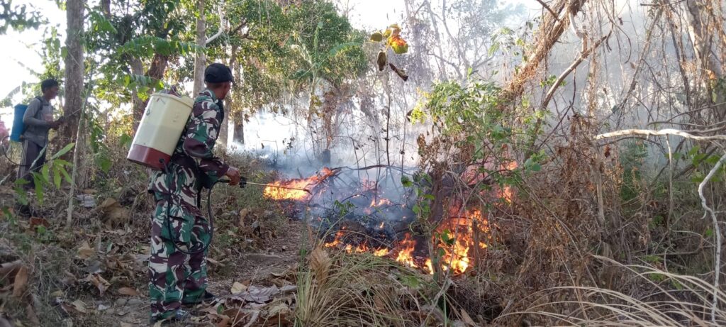 Pemadaman api dilakukan menggunakan tangki sprayer dan alat seadanya menyusuri titik api. Alhamdulillah sekitar pukul 16.50 Wita api berhasil dipadamkan. Kata Babinsa Koramil 1402-01/Polewali Sertu Andi Rustam.