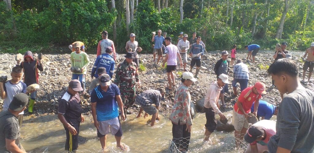 independennews.id (Polman) — Ratusan warga bersama Babinsa Kodim 1402/Polman melakukan gotong royong perbaikan jalan desa yang rusak parah akibat terkikis aliran sungai tahun lalu.