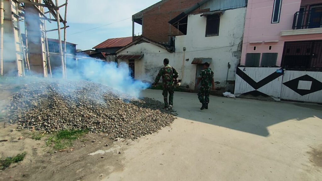 Anggota Koramil Wonomulyo Cegah DBD Melalui Fogging Lingkungan