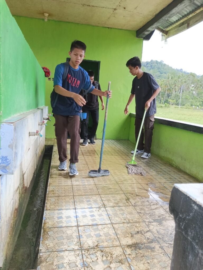 Toilet Masjid Hubbul Wathan pun menjadi fokus sasaran untuk dibersihkan secara rutin oleh Peserta Didiknya yang dikoordinir langsung Pembina OSIS, St. Rahmah, S.Pd. yang juga adalah Guru Penjasorkes dan Guru Mata Pelajaran Pendidikan Agama Islam, Sidrawatii, S.Pd.I. Diketahui di Masjid inilah setiap penghujung tahun pelajaran menjadi tempat yang representatif Peserta Ujian mengerjakan soal Asesmen Nasional dan Ujian Akhir Sekolah ini. Pasalnya, di area Masjid ini terdapat “Signal atau Jaringan Internet” yang kuat dan memadai.