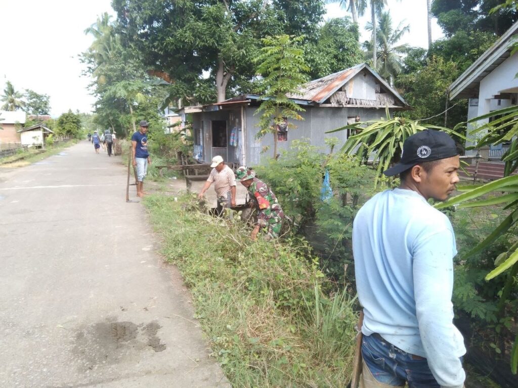 Aksi bersih-bersih lingkungan tersebut digelar di Desa Baru Kecamatan Luyo Kabupaten Polewali Mandar, Sulawesi Barat. Kamis (17/10). Sepanjang saluran drainase dipenuhi rumput liar sehingga dikhawatirkan menghambat aliran air. Kata Babinsa Desa Baru. Serka Muhamad Rusdi.