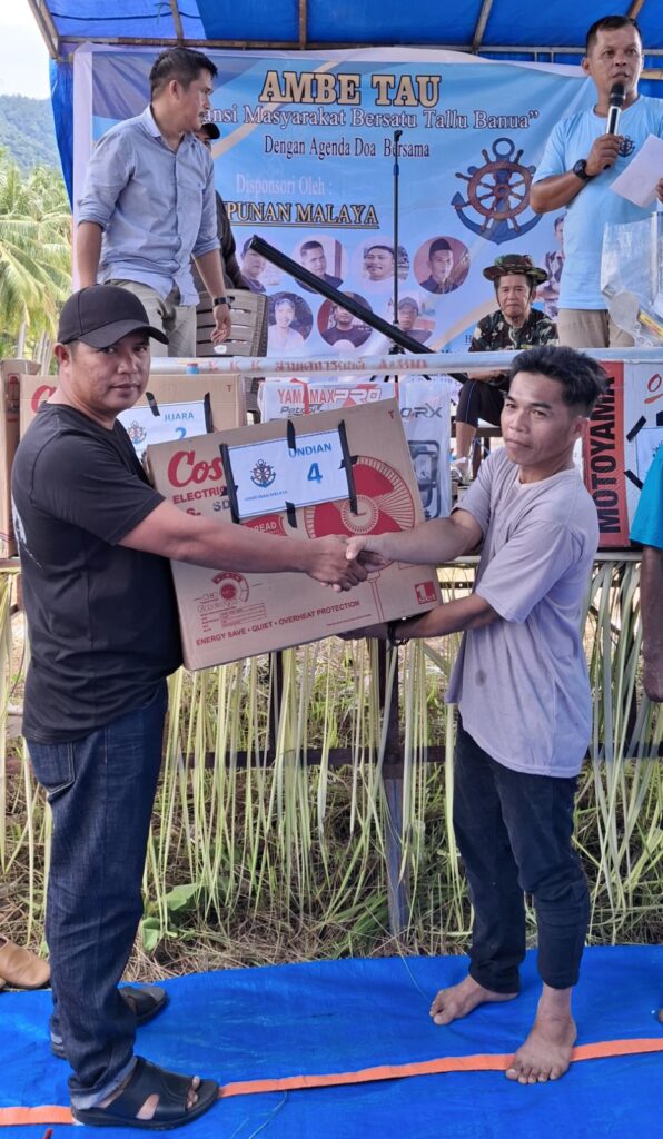 Hadiah undiannya antara lain, lanjutnya, 1 buah Mesin Katinting, 1 buah Mesin Genset, 1 buah Kulkas, 1 buah HP Oppo, buah Kompor Gas LPG, 2 buah Rice Cooker, 2 buah Kipas Angin, 2 buah Termus Ikan, 2 buah Jam Dinding. Bahkan, acara berlanjut pada malam hari, karena masih ada beberapa kegiatan, salah satunya lomba domino.