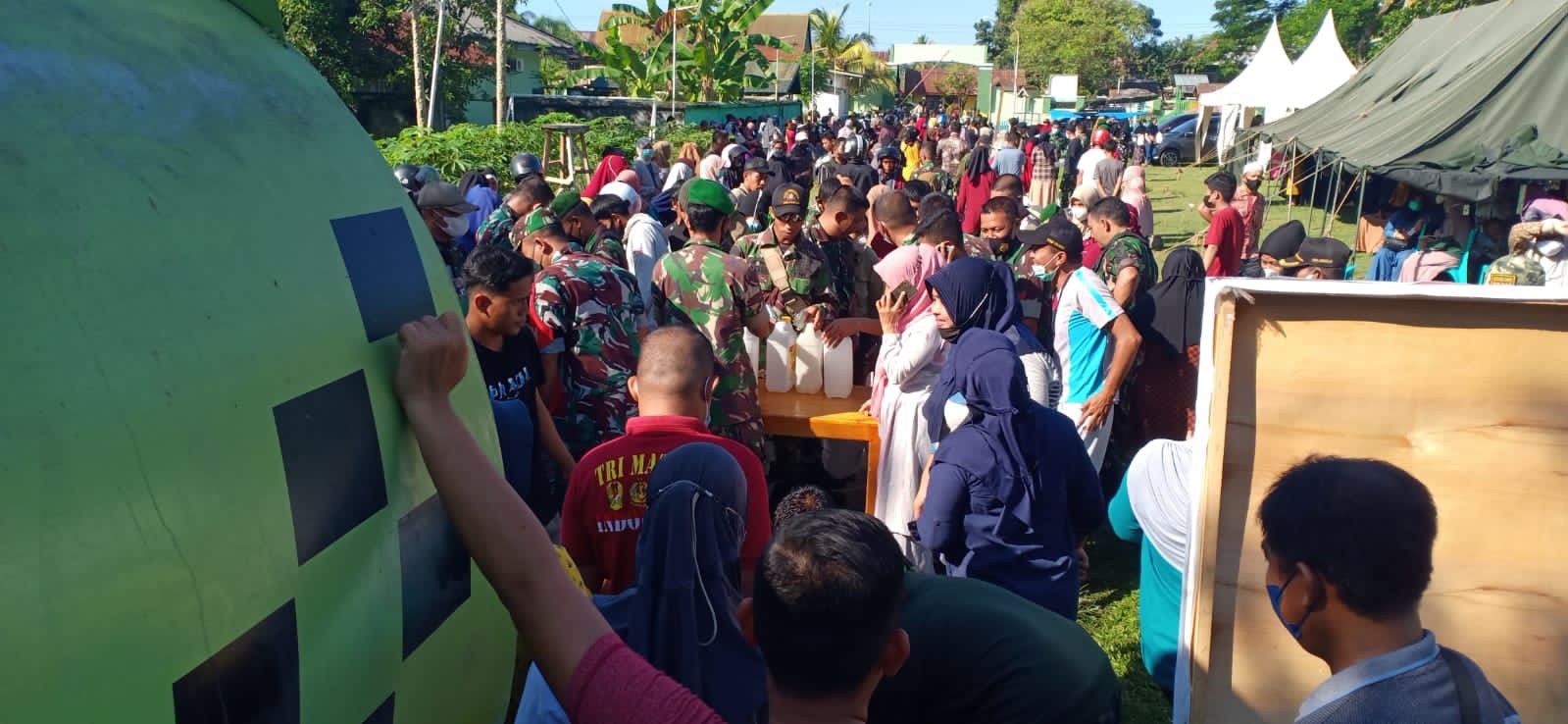 Kegiatan bazar murah minyak goreng yang digelar di Kodim 1402/Polman bekerjasama dengan PT. Tanjung Sarana Lestari Pasang Kayu dengan menyediakan 20.000 Liter minyak goreng curah untuk masyarakat Kabupaten Polewali Mandar.