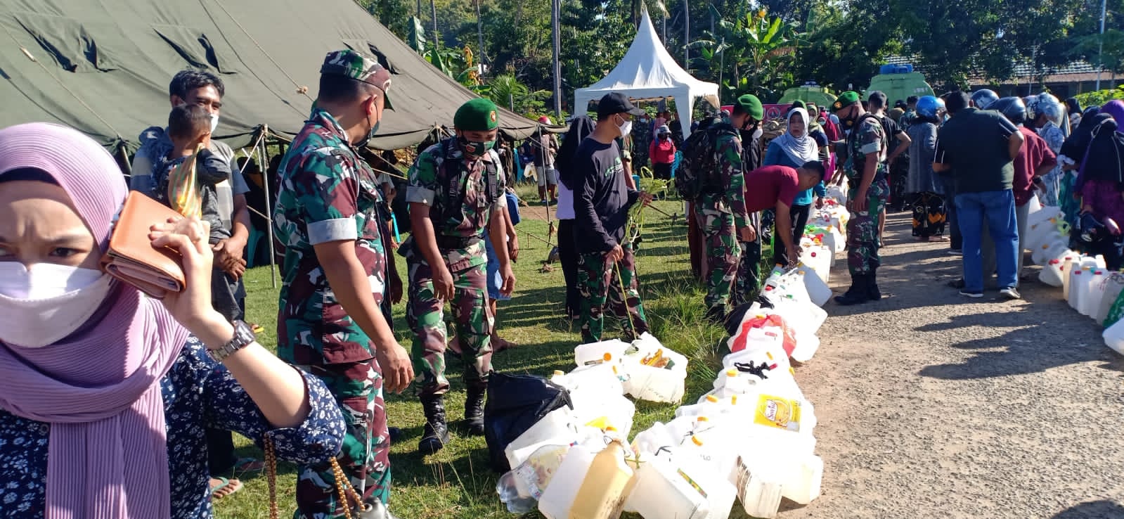 Sementara Sinar, salah satu warga Manding, yang ikut antri untuk mendapatkan minyak goreng mengaku sangat terbantu dengan adanya Bazar minyak goreng murah di Kodim.