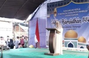 Mamuju, independennews.id – Pada malam tanggal 16 Maret 2025, Bupati Mamuju, Dr. Hj. Sitti Sutinah Suhardi, S.H., M.Si., melaksanakan kegiatan Safari Ramadhan di Kecamatan Sampaga. Dalam kesempatan tersebut, Bupati Sutinah menyampaikan pesan penting mengenai kebersihan lingkungan kepada masyarakat setempat. Beliau mengajak warga untuk lebih peduli dan menjaga kebersihan di sekitar mereka sebagai upaya menciptakan lingkungan yang sehat dan nyaman.