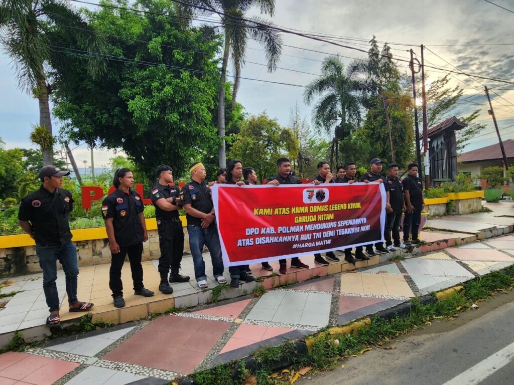 POLMAN, independennews.id – Sejumlah warga yang tergabung dalam Organisasi Masyarakat Legend Garuda Hitam menggelar aksi damai menyatakan dukungannya terhadap RUU TNI.