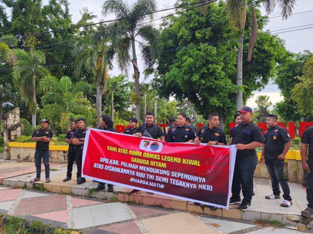 Dalam aksi tersebut, mereka membentangkan Spanduk dengan berbagai pesan dukungan bertuliskan kami atas nama organisasi Masyarakat legend kiwal Garuda hitam DPD kab Polman mendukung sepenuhnya atas disahkannya RUU TNI demi tegaknya NKRI, “NKRI Harga Mati”
