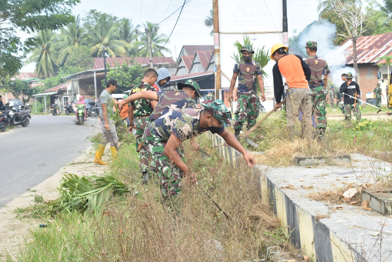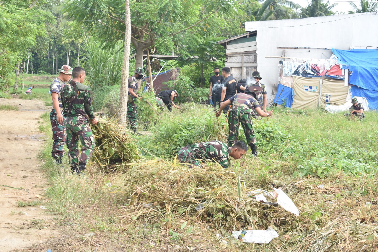 Anggota TNI Bersihkan Lingkungan Pasar Matakali