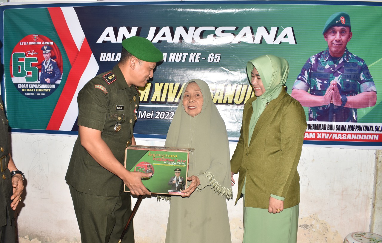 independennews.id (Polman)- Usai tabur bunga di Taman Makam Pahlawan Rea Timur, Dipimpin oleh Dandim 1402/Polman Letkol Czi Masni Etha Yanurianedhi, M. Tr.(Han) didampingi ketua persit KCK Cabang XXXVII Dim Polman Ny. Indah Masni beserta rombongan, melaksanakan Anjangsana kepada Warakawuri Veteran dan anak yatim, dalam rangka menyambut Hari Ulang Tahun (HUT) Kodam XIV/Hasanuddin ke 65.
