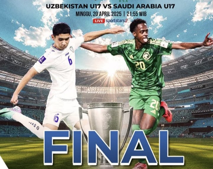 independennews.id – Laga pamungkas Piala Asia U-17 2025 akan mempertemukan tuan rumah Arab Saudi melawan Uzbekistan, Minggu (20/4/2025) pukul 22.00 WIB, di Stadion King Fahd Sports City, Taif. Duel panas ini bukan sekadar perebutan gelar, tetapi juga ajang pembalasan bagi Green Falcons yang sebelumnya dipermalukan Uzbekistan di fase grup.