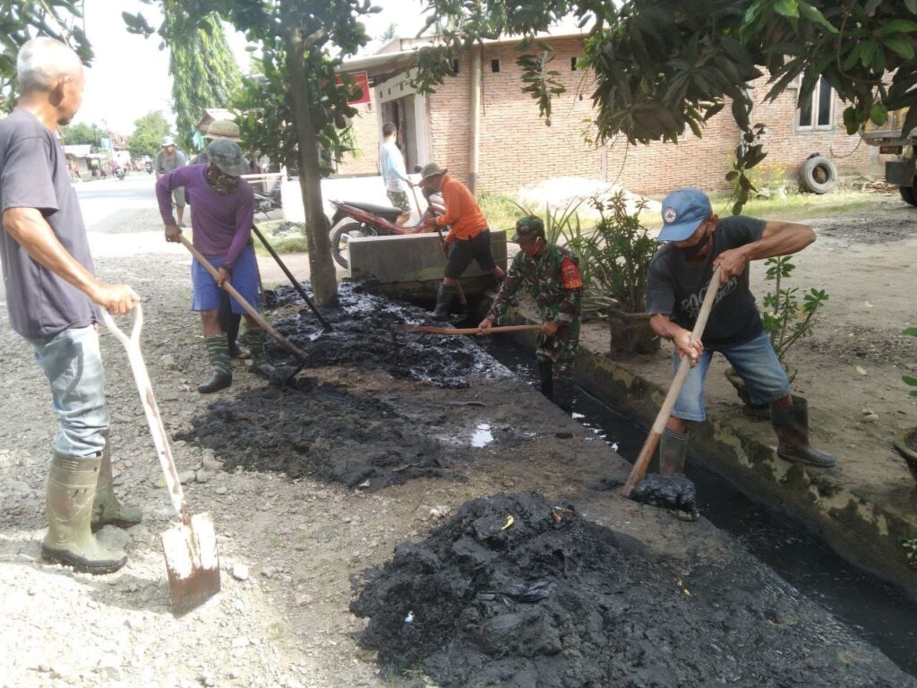 “Drainase sudah lama tak dibersihkan, lumpurnya menumpuk dan bisa ganggu aliran air. Makanya kita turun bersama warga untuk bersihkan,” ujar Babinsa setempat.