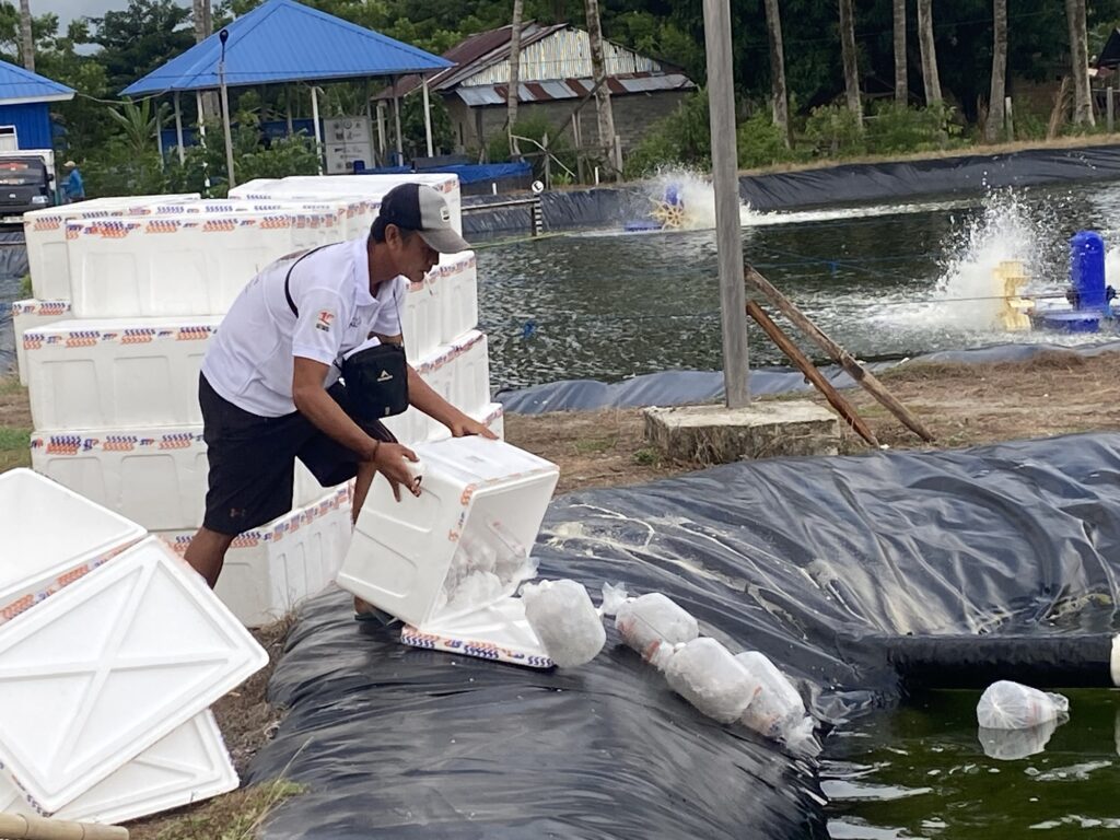 Kegiatan ini menjadi bukti nyata keseriusan kelompok budidaya dalam meningkatkan produksi udang vaname, varietas unggulan yang dipilih karena pertumbuhan cepat, daya tahan tinggi, serta nilai jual yang kompetitif di pasar lokal maupun nasional.