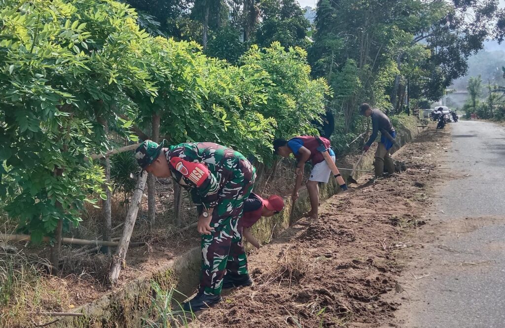 Polewali Mandar, independennews.id – Untuk mencegah terjadinya genangan air saat musim hujan, sejumlah personel Koramil 1402-01/Polewali bersama warga menggelar kerja bakti membersihkan lingkungan dan saluran drainase di Desa Duampanua, Kecamatan Anreapi, Kabupaten Polewali Mandar, Minggu (22/6/2025).