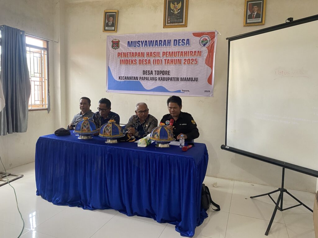 Mamuju, independennews.id – Pemerintah Desa Topore, Kecamatan Papalang, Kabupaten Mamuju, Sulbar, menggelar Musyawarah Desa (Musdes) untuk menetapkan hasil Pemutakhiran Indeks Desa (ID) Tahun 2025 di kantor Desa Topore, yang berjalan lancar dan mendapat dukungan dari berbagai pihak, Kamis 26/06/2025.