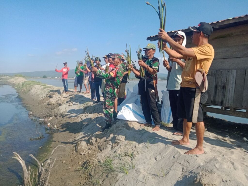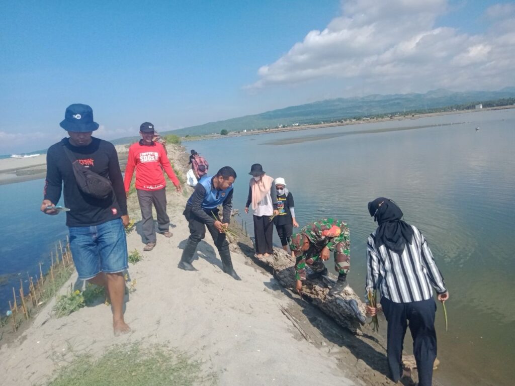 Dengan semangat gotong royong, para Babinsa dan warga memulai penanaman di sepanjang garis pantai sebagai langkah nyata menjaga ekosistem pesisir dari abrasi dan kerusakan lingkungan.