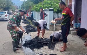 Polewali Mandar, independennews.id — Sejumlah personel TNI dari Koramil 1402-01/Polewali bersama warga menggelar kerja bakti pembersihan lingkungan dan saluran drainase di Kelurahan Takatidung, Kecamatan Polewali, Rabu (3/9/2025).