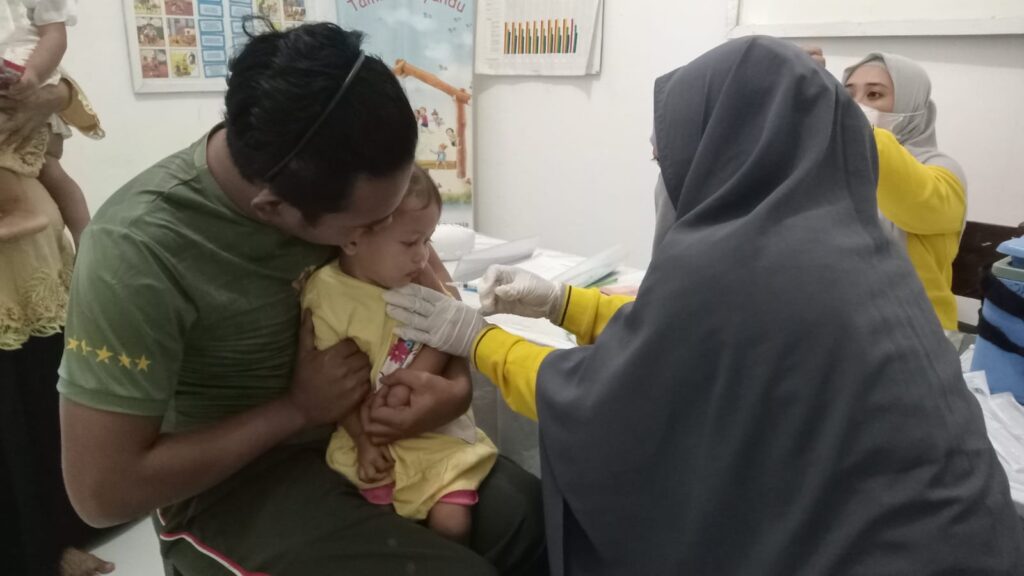 Kegiatan ini merupakan program rutin yang dilaksanakan oleh petugas kesehatan Bidan puskesmas, yang dibantu oleh ibu kader Posyandu Persit KCK Kodim Polman yang ditugaskan untuk membantu mengontrol kesehatan Balita dan Ibu hamil yang berdomisili di sekitar lingkungan Makodim 1402/Polman.