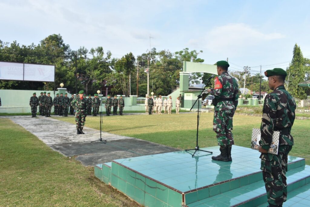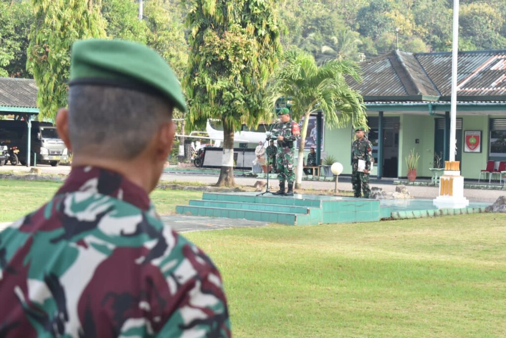 Usai membacakan amanat Pangdam, Dandim 1402/Polman menekankan kepada seluruh Prajurit Kodim 1402/Polman agar mengerti dan memahami serta melaksanakan slogan 6K Dihati Kita. (Zik)