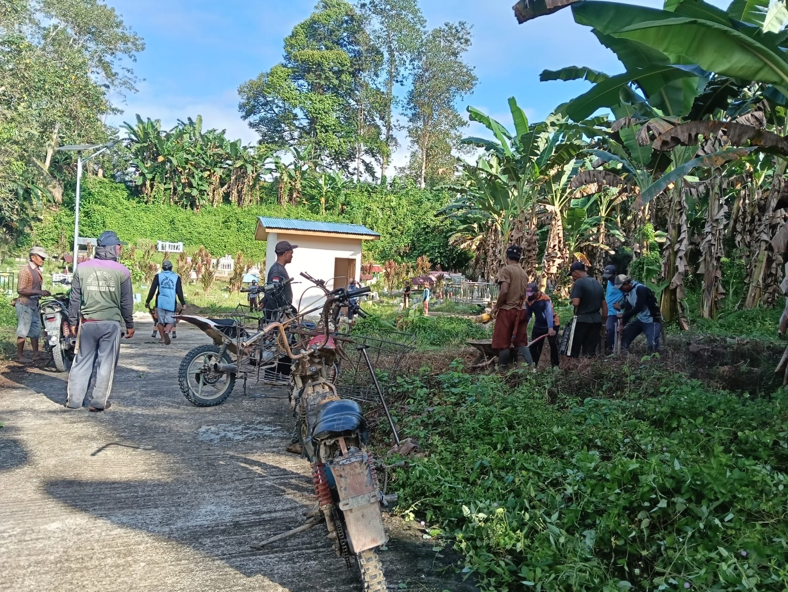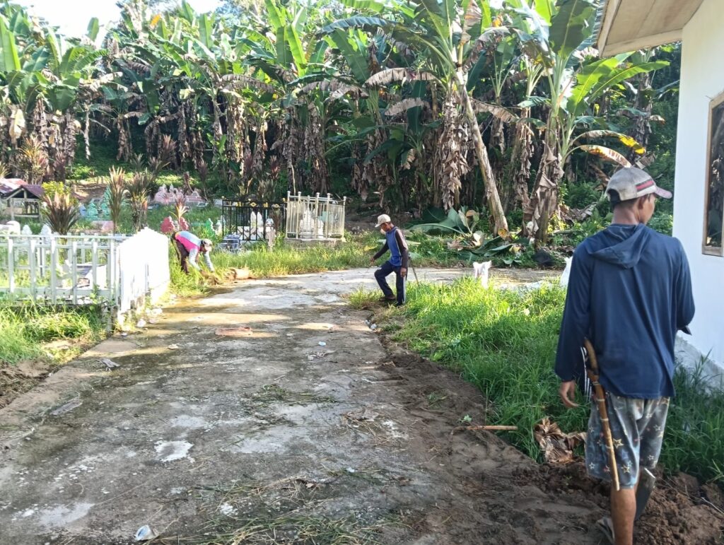 Kegiatan gotong royong tersebut difokuskan pada pembersihan jalan dan lingkungan sekitar area perkuburan, termasuk wilayah lain yang ditumbuhi rumput liar. Aksi kebersamaan ini dilakukan untuk menjaga kebersihan lingkungan sekaligus memperlancar akses masyarakat menuju kawasan tersebut.