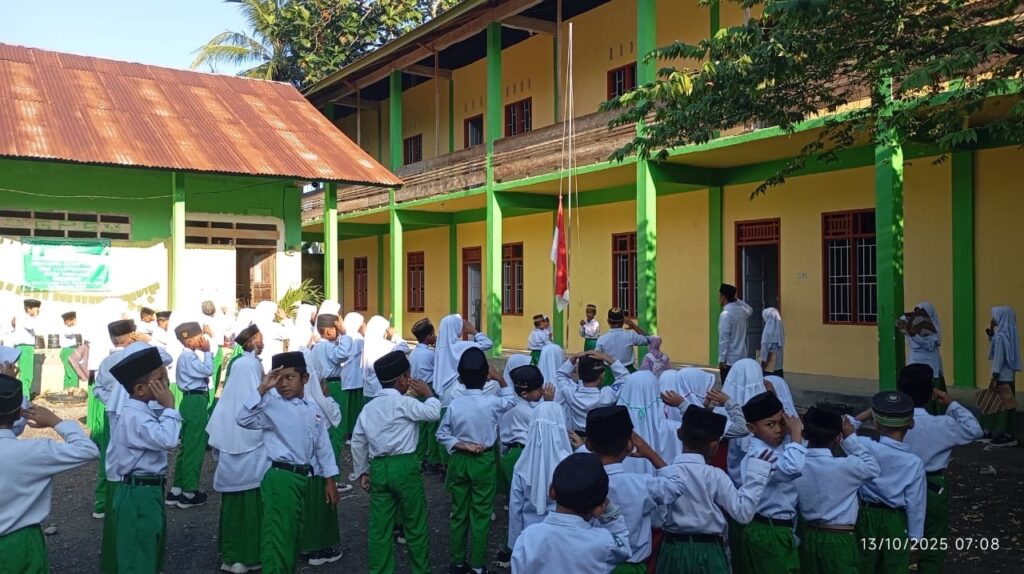 Tidak kalah penting, madrasah juga rutin melaksanakan upacara bendera setiap hari Senin. Kegiatan ini menjadi sarana untuk membiasakan peserta didik berbaris dengan rapi, memahami tahapan-tahapan dalam upacara, serta menumbuhkan rasa disiplin dan nasionalisme. Pembiasaan ini diharapkan dapat membentuk karakter peserta didik menjadi lebih tertib dan bertanggung jawab.