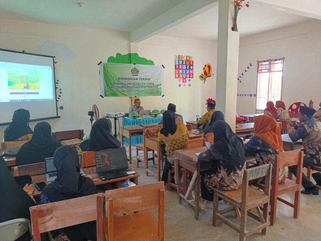 Kegiatan BIMTEK ini menghadirkan Pengawas Madrasah Ibtidaiyah Wilayah II, H. Basir Sagira, S.T., M.Pd, sebagai narasumber. Dalam materinya, beliau menekankan pentingnya pendekatan pendidikan yang menanamkan nilai cinta, empati, dan kepedulian, sehingga peserta didik tumbuh menjadi pribadi berakhlak mulia serta mampu berkontribusi positif bagi masyarakat.