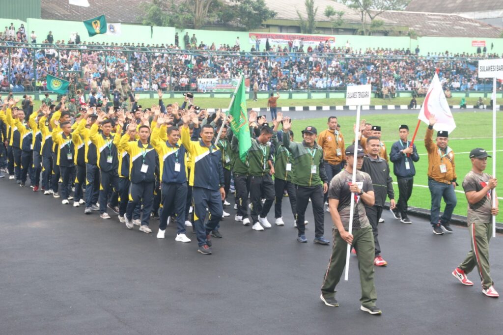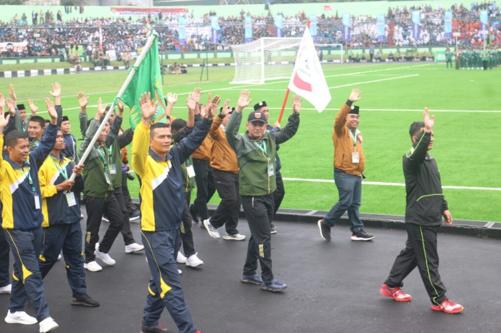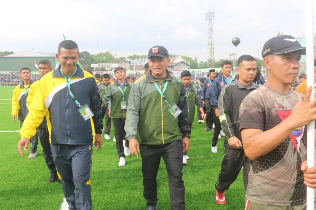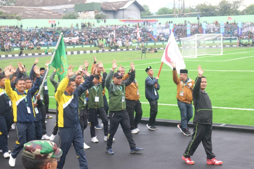 Bandung,- Dipimpin Dandim 1402/ Polman Letkol Czi Masni Etha Yanurianedhi, M.Tr. (Han), Selaku Koordinator, Tim santri sulbar ikuti pembukaan Liga Santri Piala Kasad yang dirangkaikan dengan HUT TNI Ke-77 di Stadion Siliwangi Kota Bandung, Jawa Barat, Rabu (5/10/2022).