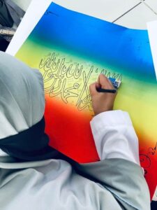 “Tidak hanya fokus pada pembinaan keagamaan, pondok pesantren ini juga memberikan pembinaan keterampilan kepada santri, salah satunya melalui kegiatan seni kaligrafi. Pembinaan keterampilan ini bertujuan mengembangkan bakat dan kreativitas santri dalam bidang seni Islam, sekaligus menanamkan kecintaan terhadap Al-Qur’an melalui karya visual bernilai estetis dan religius,” paparnya penuh semangat.