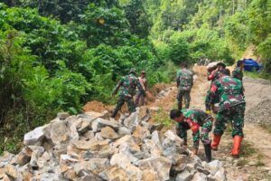 Pembangunan talud sepanjang kurang lebih 50 meter tersebut merupakan bagian dari sasaran fisik TMMD ke-127 yang bertujuan memperkuat badan jalan sekaligus mencegah longsor pada titik-titik rawan.