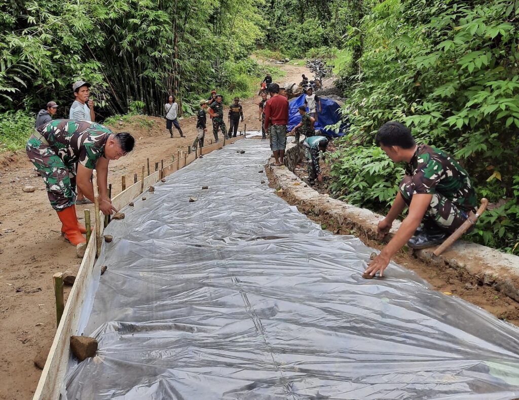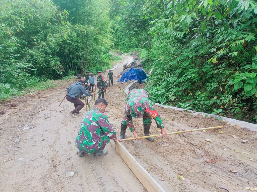 Ia menjelaskan, rabat beton sepanjang 500 meter dikerjakan secara bertahap dengan memulai dari ujung jalur untuk memudahkan pelansiran material ke titik sasaran. Medan yang cukup menantang menjadi perhatian khusus dalam pengaturan teknis pekerjaan di lapangan.