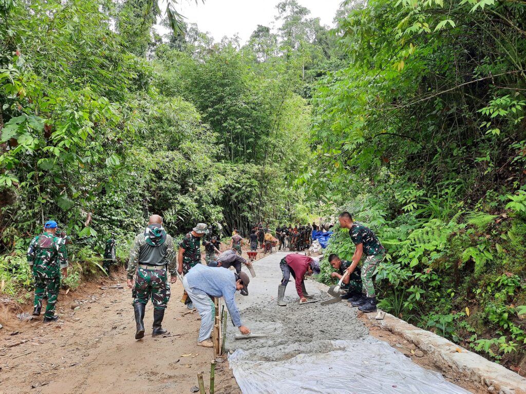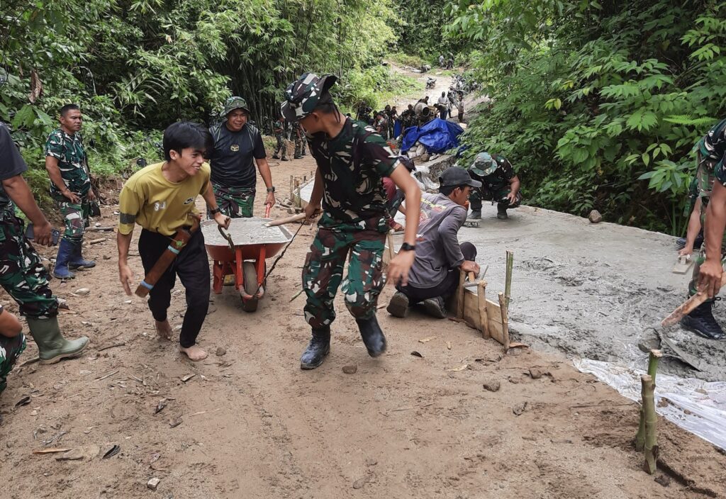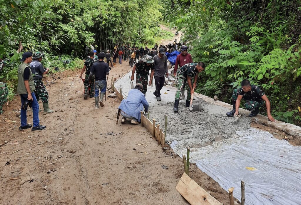 Polewali Mandar, independennews.id -– Satuan Tugas TNI Manunggal Membangun Desa (TMMD) ke-127 Kodim 1402/Polman mempercepat pengerjaan rabat beton sepanjang 500 meter dengan lebar 4 meter pada ruas Jalan Poros Bulo menuju Lenggo, Kabupaten Polewali Mandar.