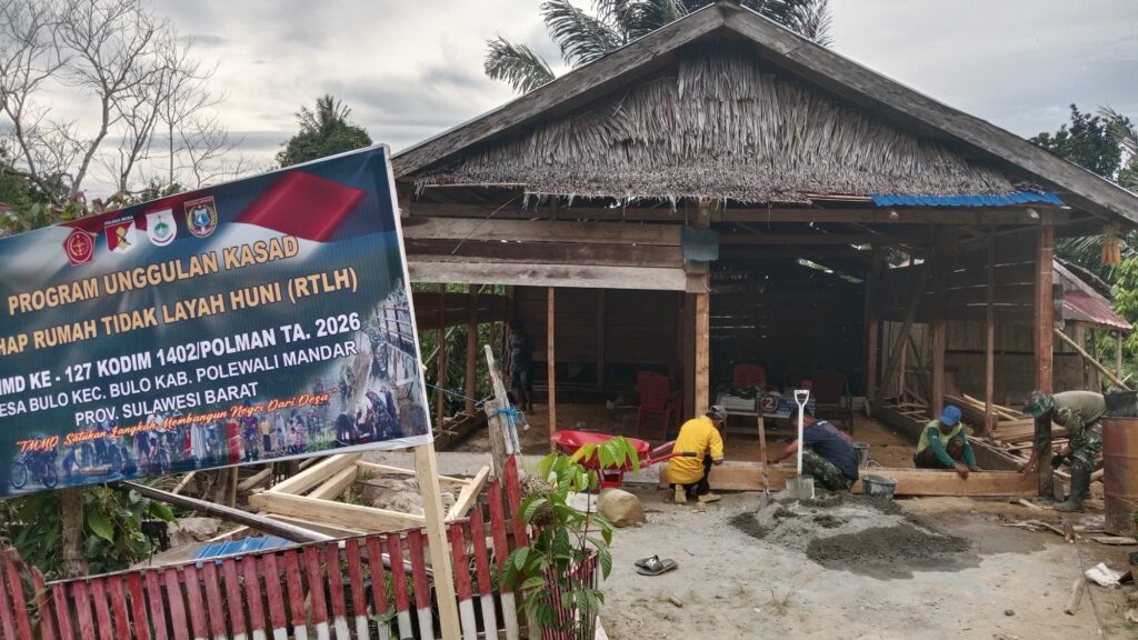 Polewali Mandar, independennews.id -– Satuan Tugas (Satgas) TNI Manunggal Membangun Desa (TMMD) ke-127 Kodim 1402/Polman terus mengerjakan lima unit rumah tidak layak huni (RTLH) di Desa Bulo, Kecamatan Bulo, Kabupaten Polewali Mandar.