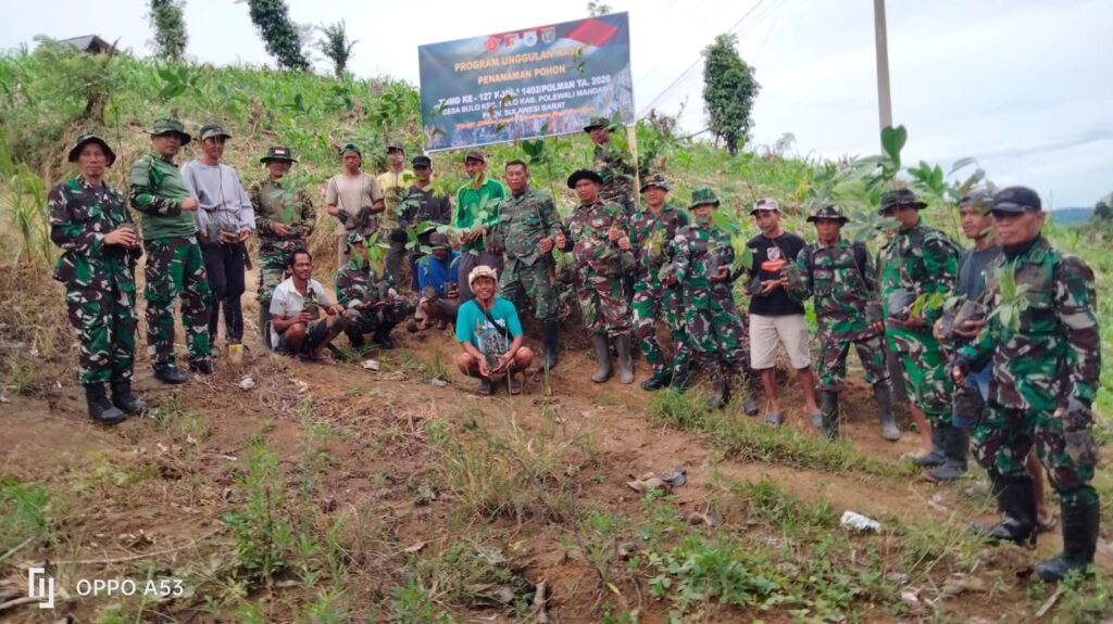 Polewali Mandar, independennews.id -– Satuan Tugas (Satgas) TNI Manunggal Membangun Desa (TMMD) ke-127 Kodim 1402/Polman bersama masyarakat melaksanakan penanaman pohon buah di Desa Bulo, Kecamatan Bulo, Kabupaten Polewali Mandar, Sabtu (14/2/2026).