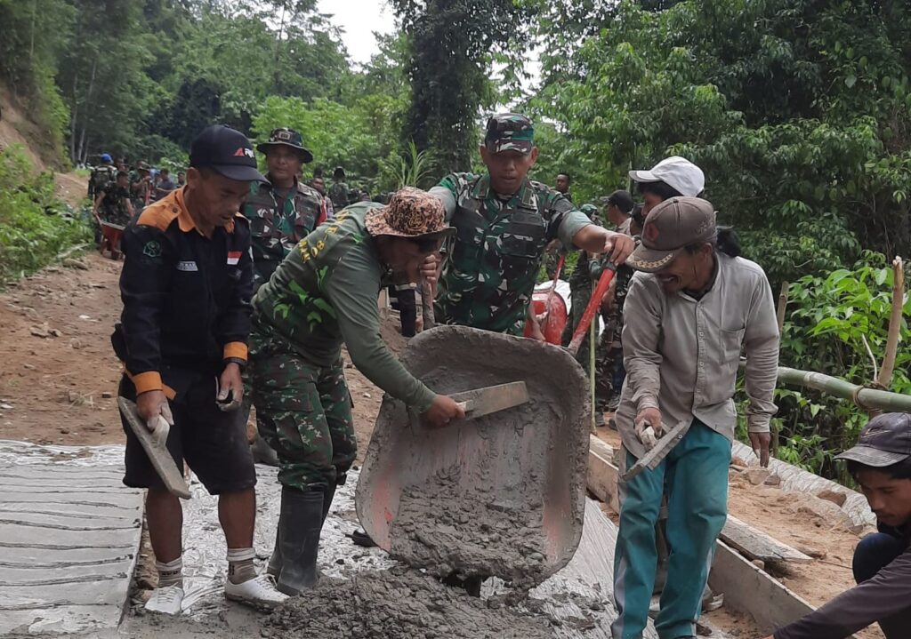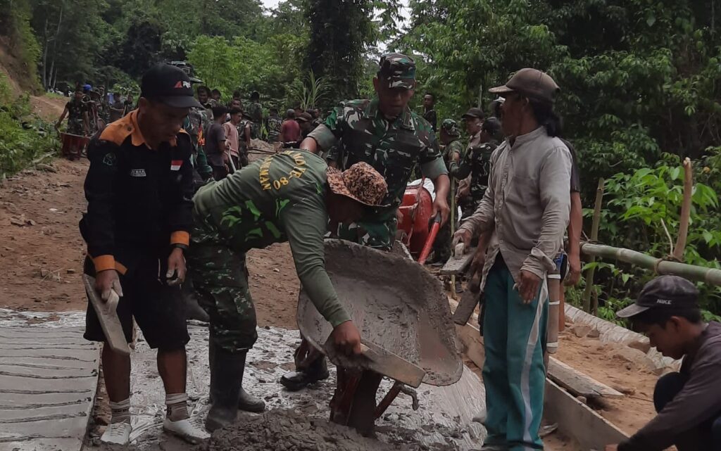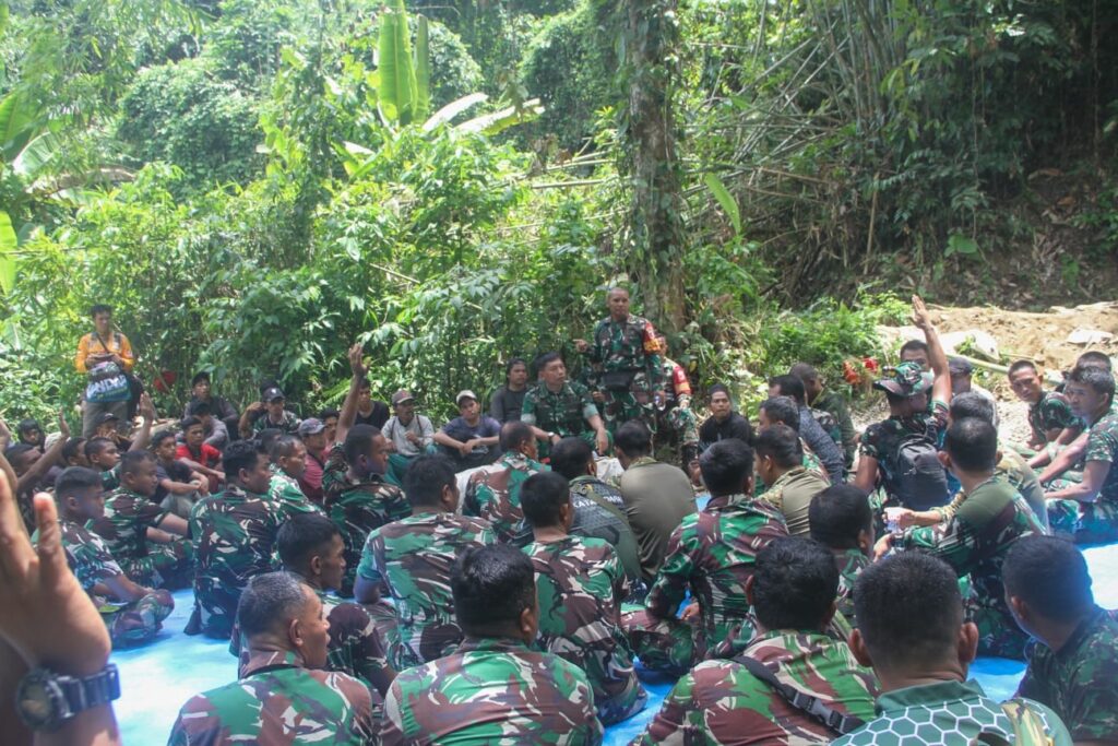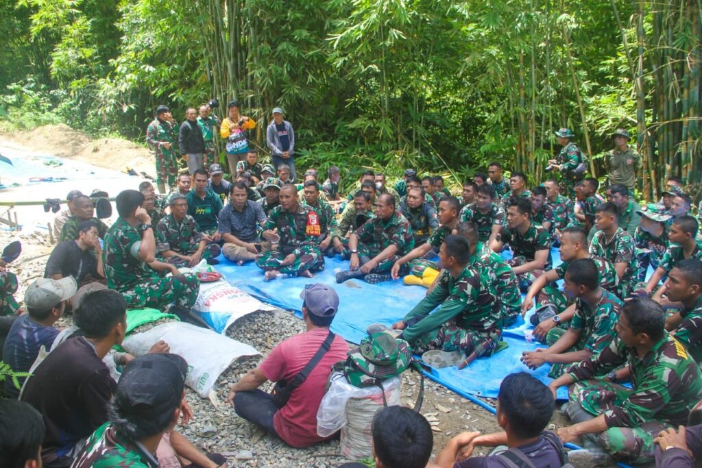 Pemandangan itu menjadi potret nyata kemanunggalan TNI dan rakyat. Tidak ada sekat antara prajurit dan warga. Mereka duduk setara, berbagi harapan yang sama — membuka keterisolasian desa dan menghadirkan masa depan yang lebih baik.