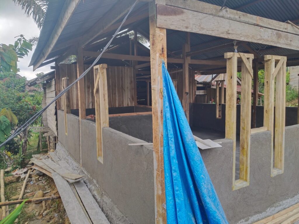 Di hari pertama bulan suci Ramadhan, bangunan rumah yang sebelumnya sederhana itu mulai tampak berdiri kokoh dengan dinding yang telah diplester dan struktur yang semakin rapi.