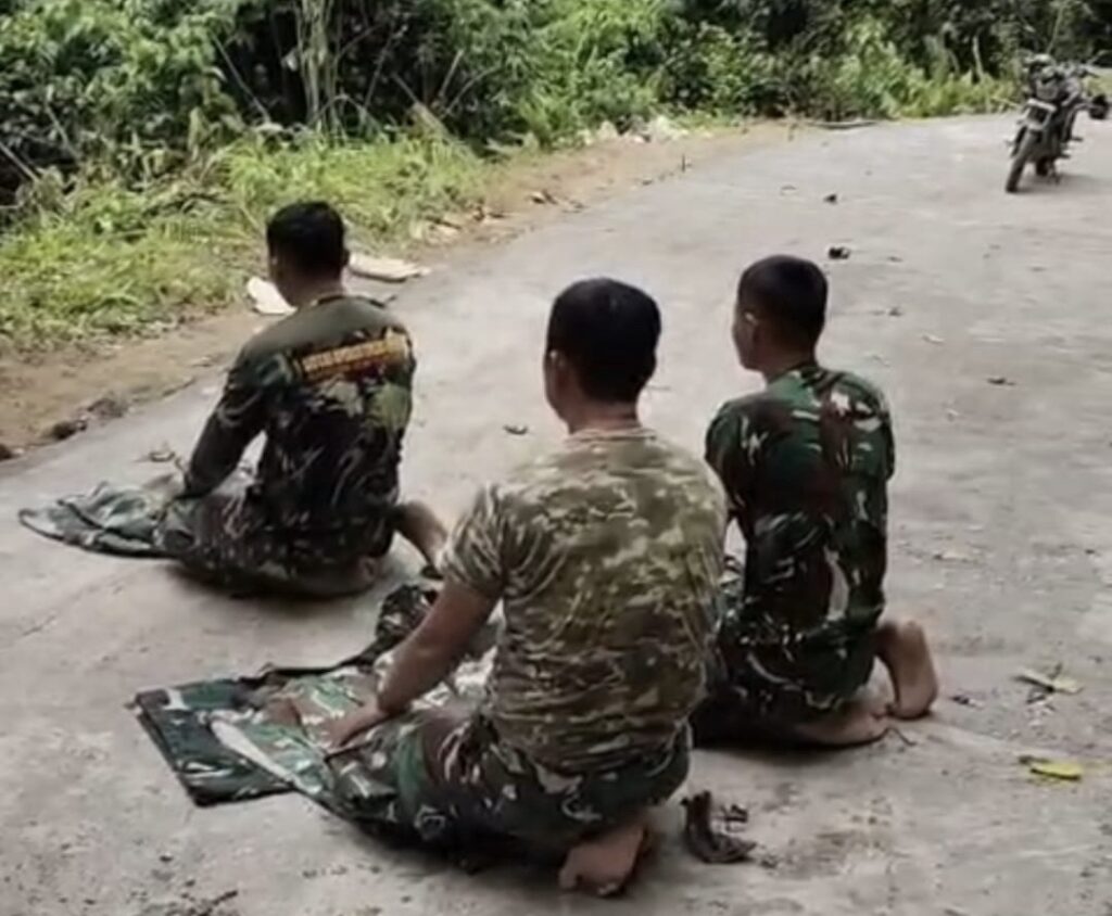 Hamparan cor yang masih baru itu sejenak berubah fungsi menjadi tempat ibadah. Dengan beralaskan pakaian dinas yang digelar di atas permukaan beton, para prajurit khusyuk menunaikan kewajiban di tengah keterbatasan fasilitas.