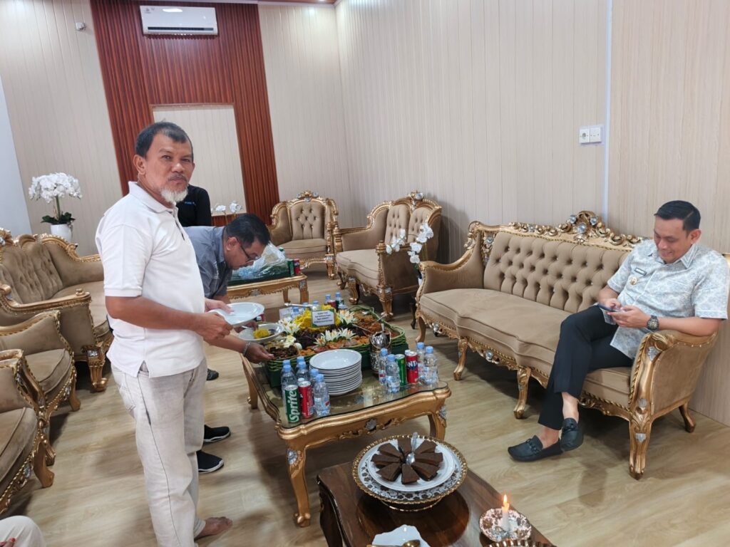 Kehadiran rombongan disambut hangat oleh Wakil Wali Kota Parepare di rumah jabatannya. Suasana penuh keakraban tampak saat penyerahan kue ulang tahun sebagai simbol perhatian dan kebersamaan antara insan pers dan pemerintah daerah.