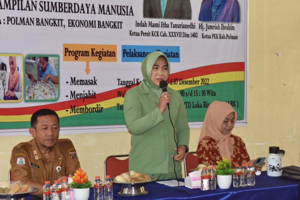 independennews.id (Polewali Mandar) — Ketua Persit KCK Cabang XXXVII Kodim 1402/Polman Ny. Indah Masni,SH. Membuka pelatihan pengembangan keterampilan Sumberdaya manusia yang digelar dinas sosial Kabupaten Polewali Mandar, di UPTD Loka Bina Karya, Madatte, Polman, Senin (5/12/2022).
