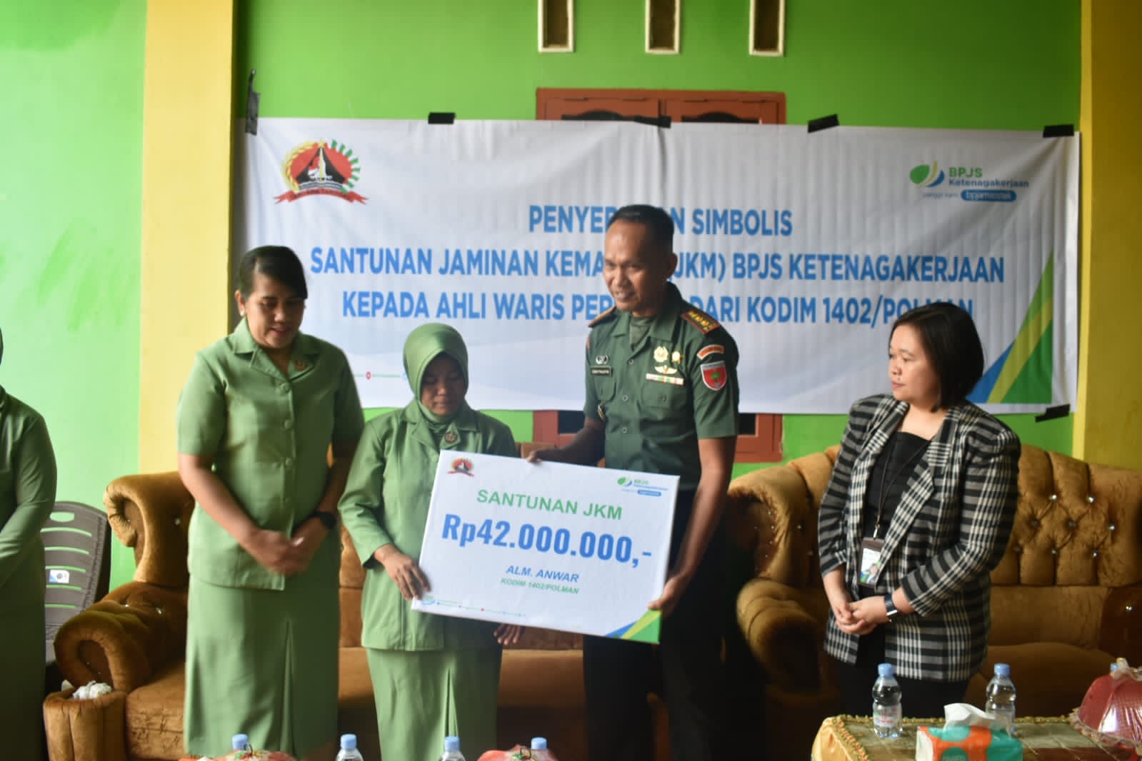 Dandim 1402/Polman Serahkan Santunan BPJS Ketenagakerjaan Kepada Ahli Waris