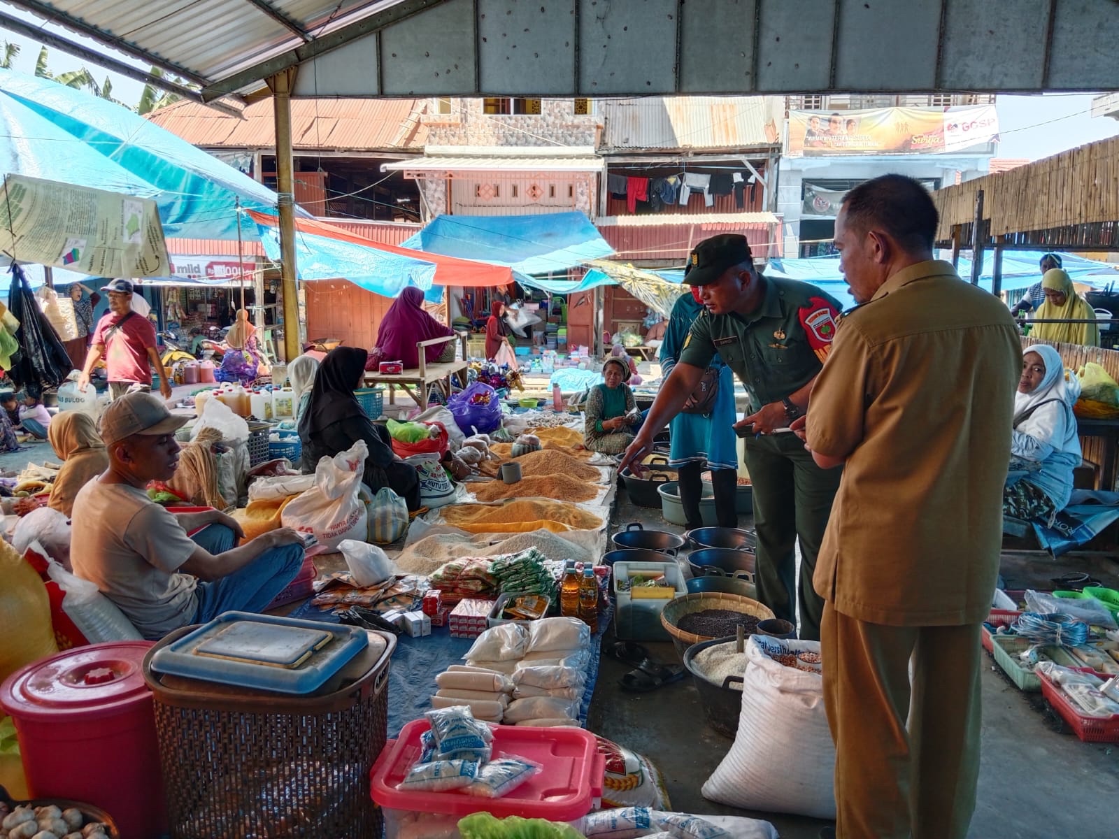 Musim Kemarau, Babinsa Kodim Polman Cek Ketersediaan dan Harga Bahan Pokok Di Pasar Tradisional