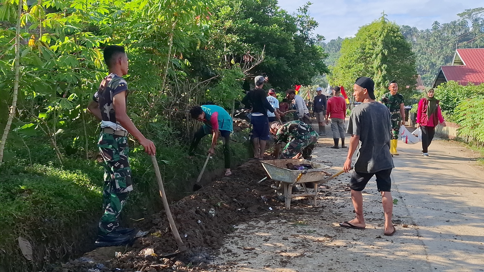 TNI dan Warga Kompak Gelar Karya Bakti di Desa Riso
