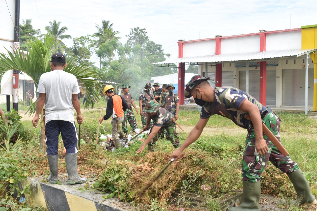 Anggota TNI Bersihkan Lingkungan Pasar Matakali