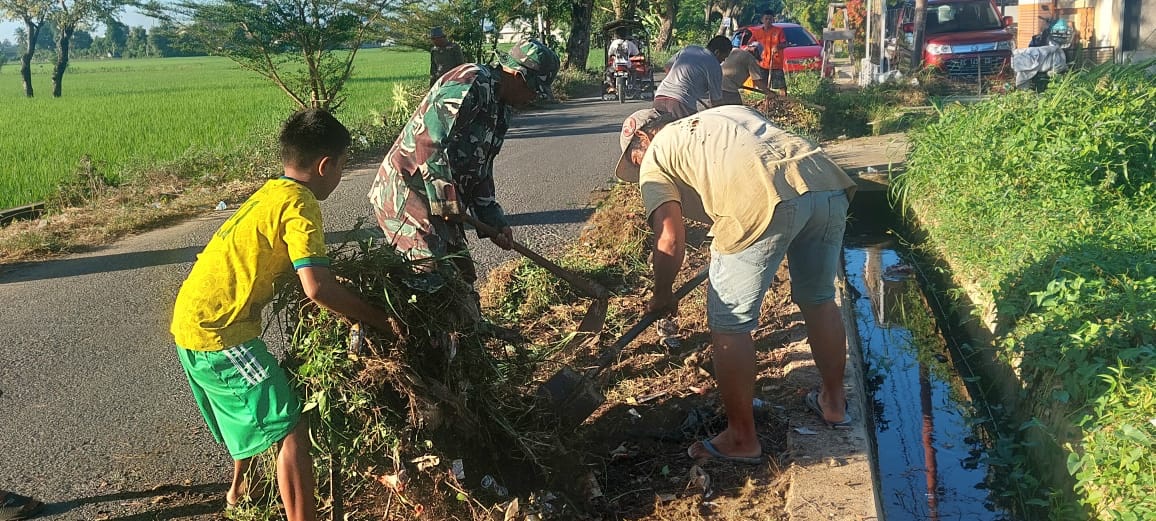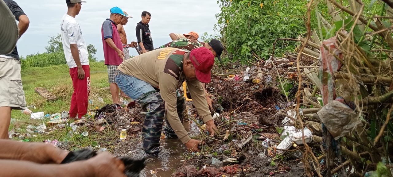 Babinsa Kodim 1402Polman dan Warga Bersihkan Sampah di Saluran Irigasi yang Cemari Lingkungan