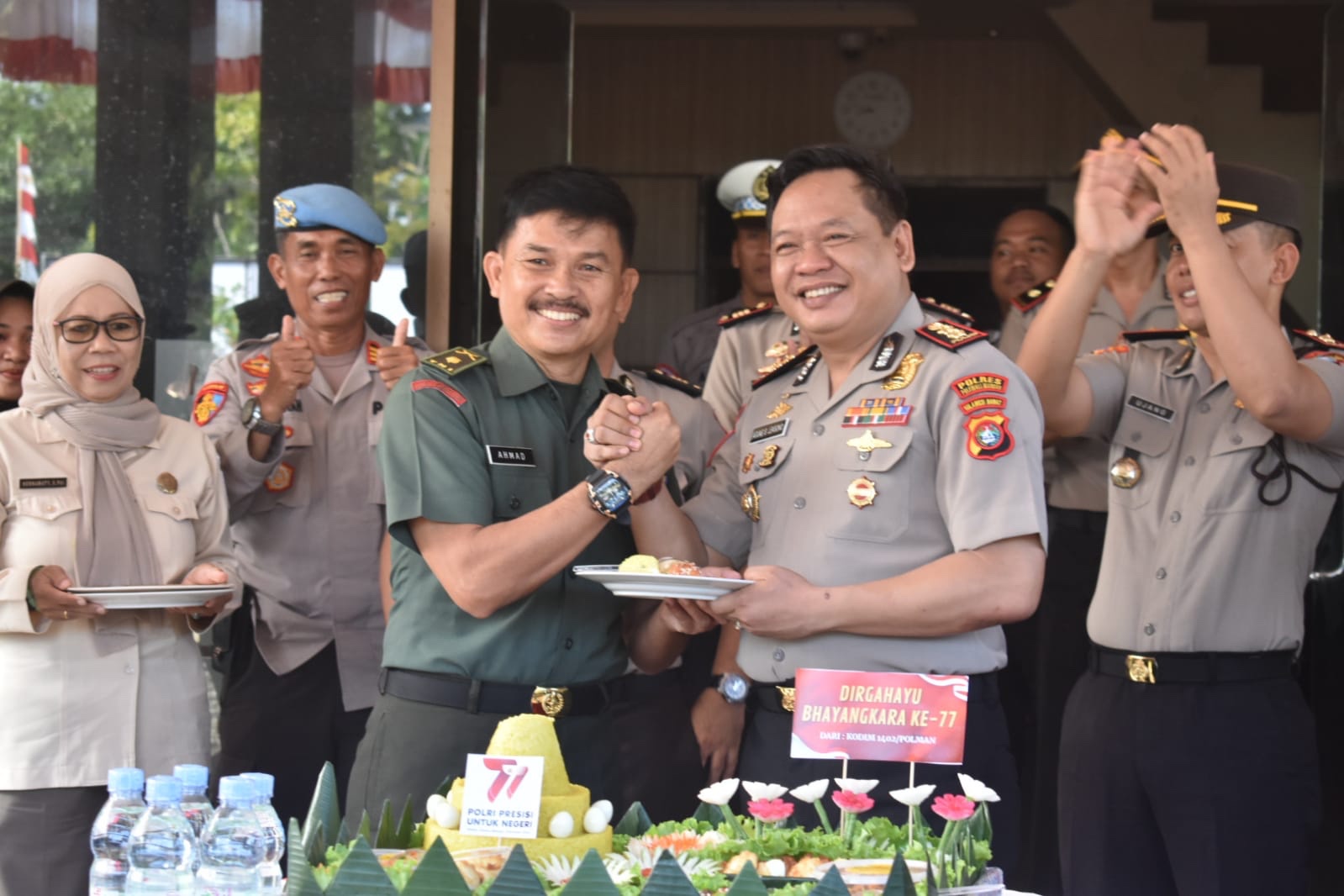 Personil Kodim 1402/Polman Berikan Ucapan Hari Bhayangkara Ke Polres Polman